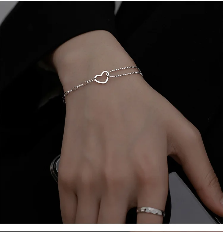 Fashion Jewelry 925 Silver Two-layers Chain Bracelet Women Luxury 925 Sterling Silver Versatile Bracelet
