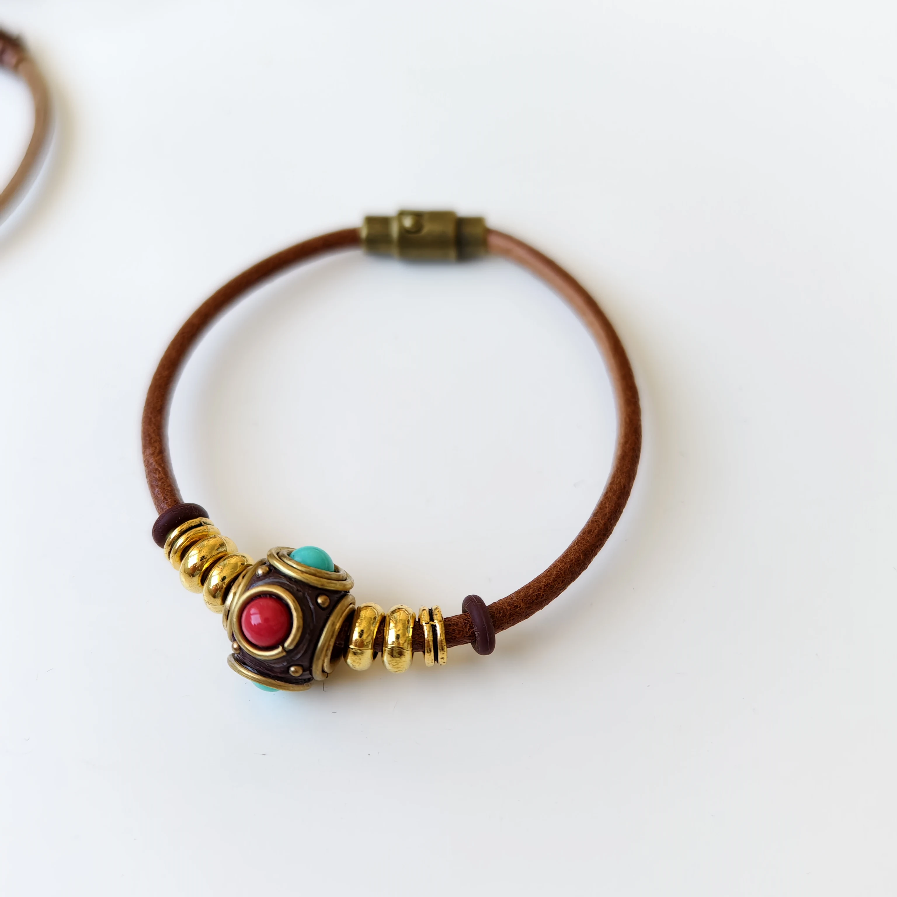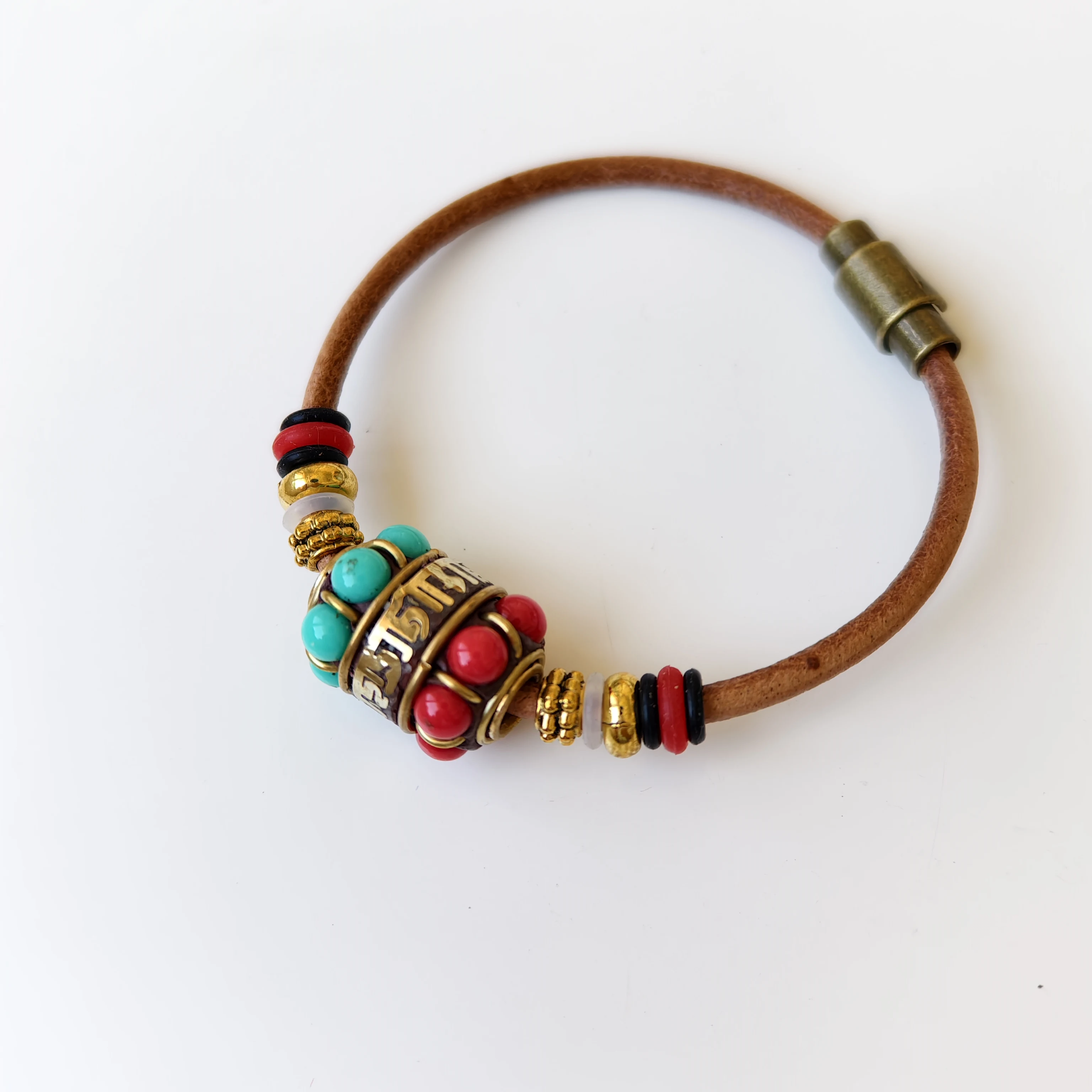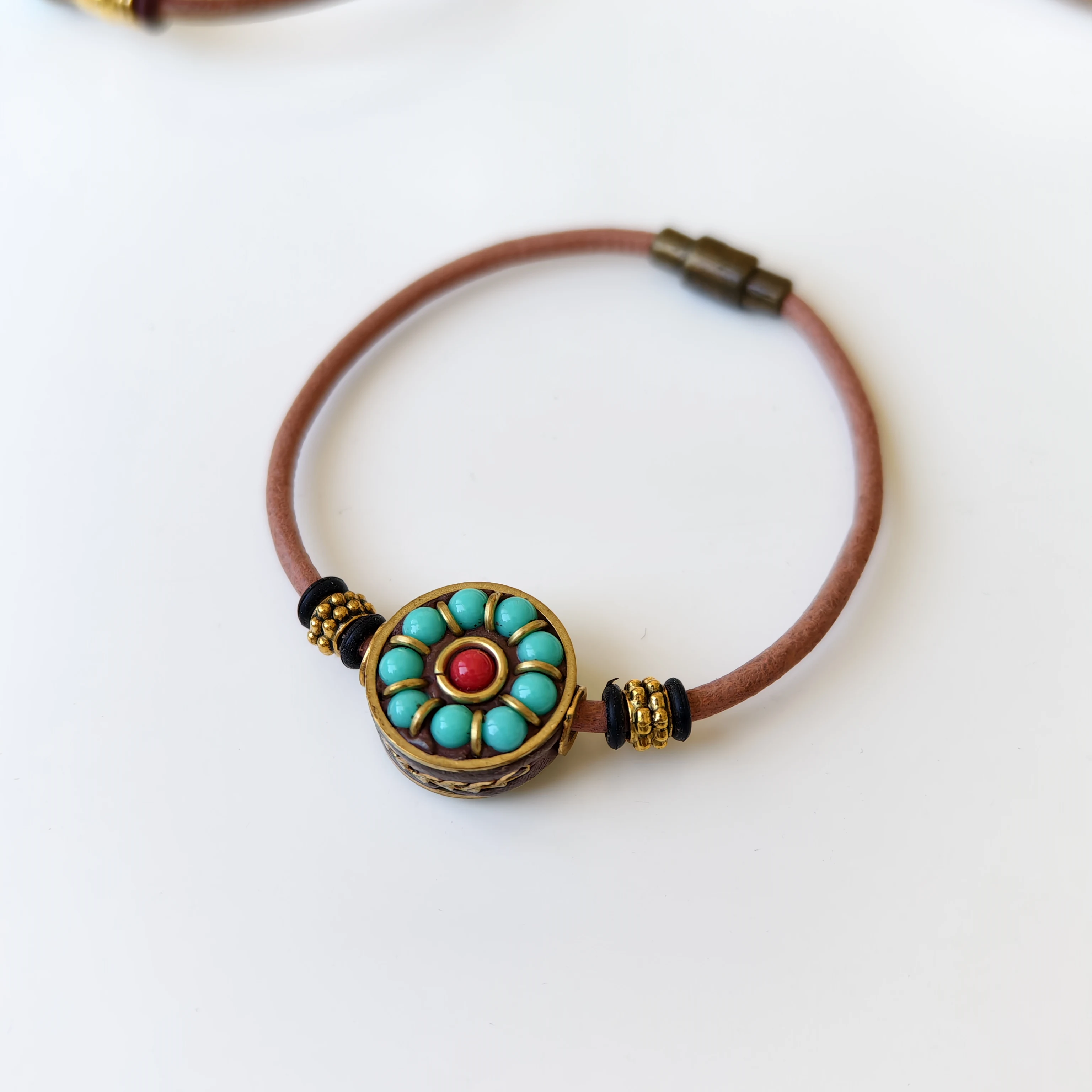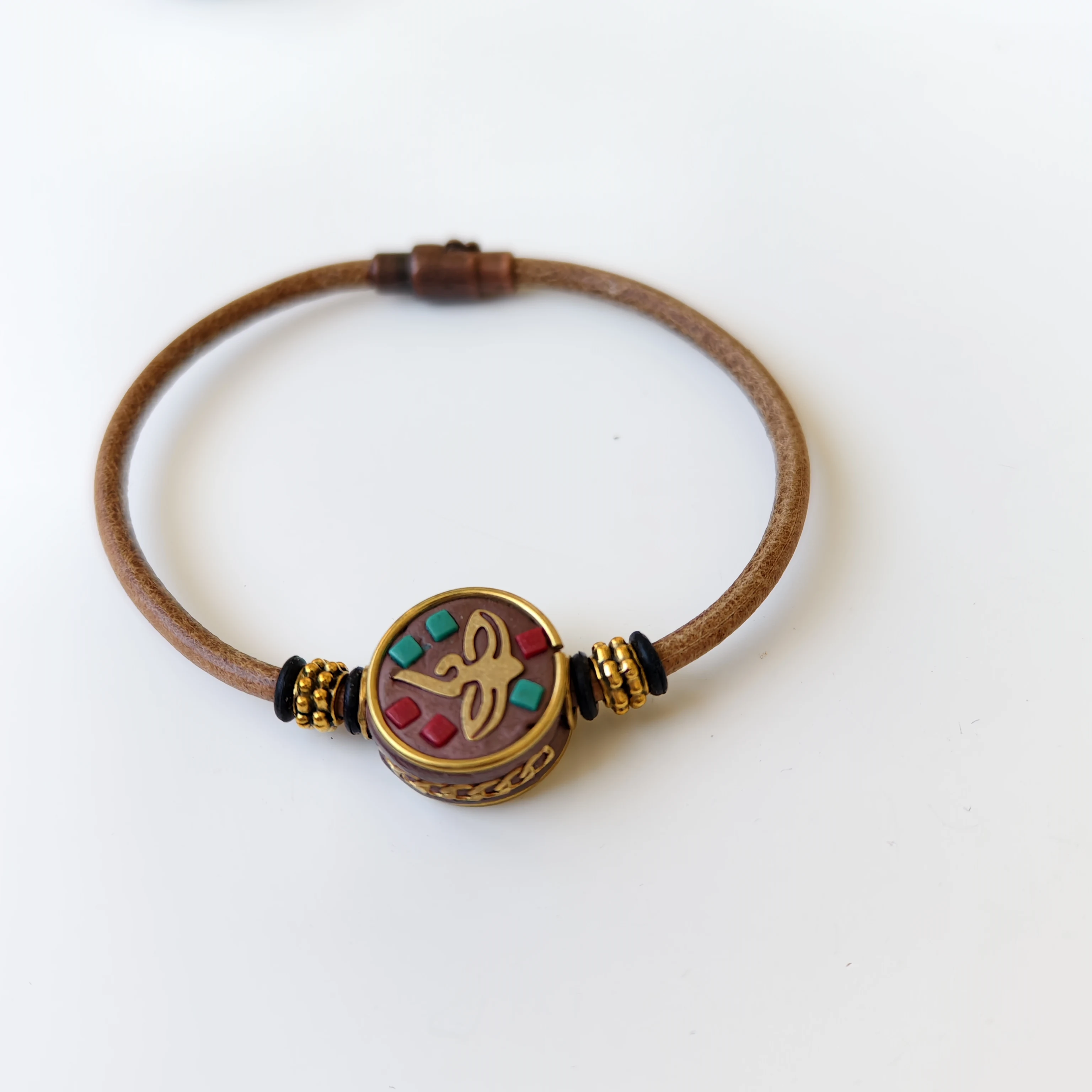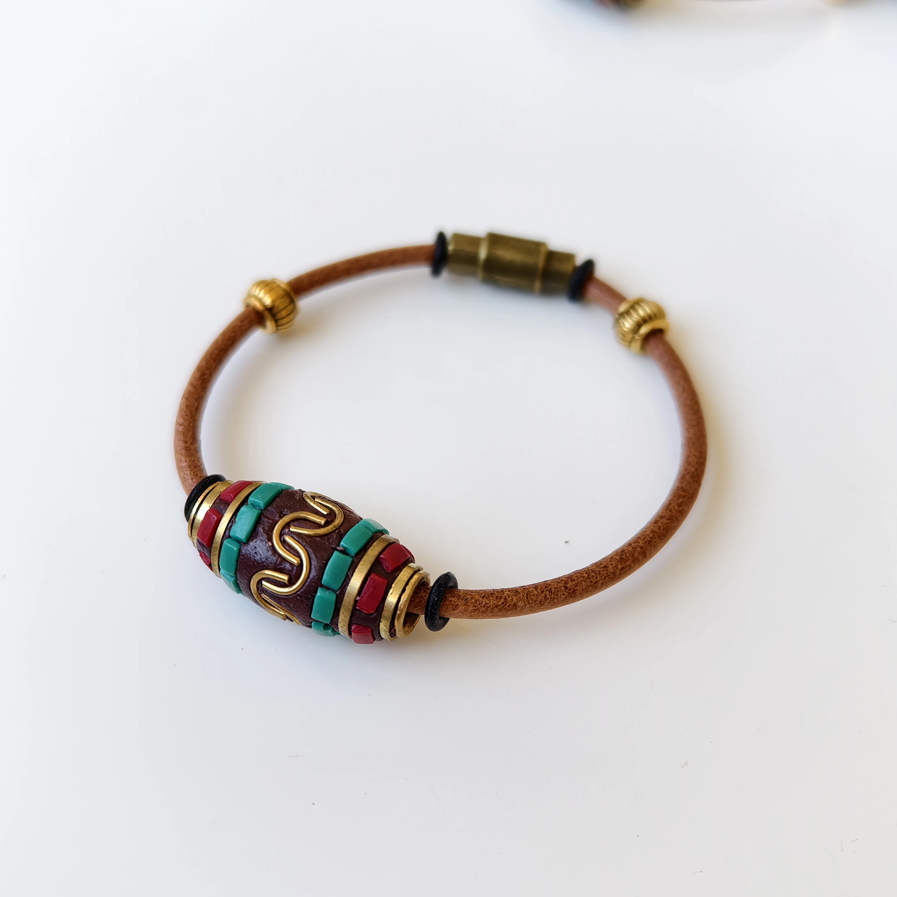 Orginal Design Retro Tibetan-style Leather Cord Wrist Jewelry Handmade Ethnic Nepali Copper Beads Charm Bracelet for Men Women