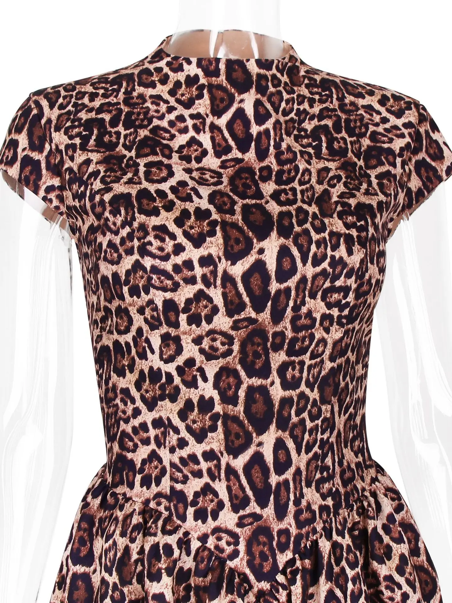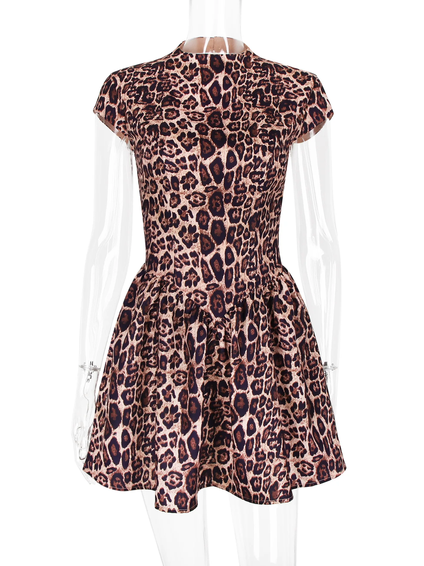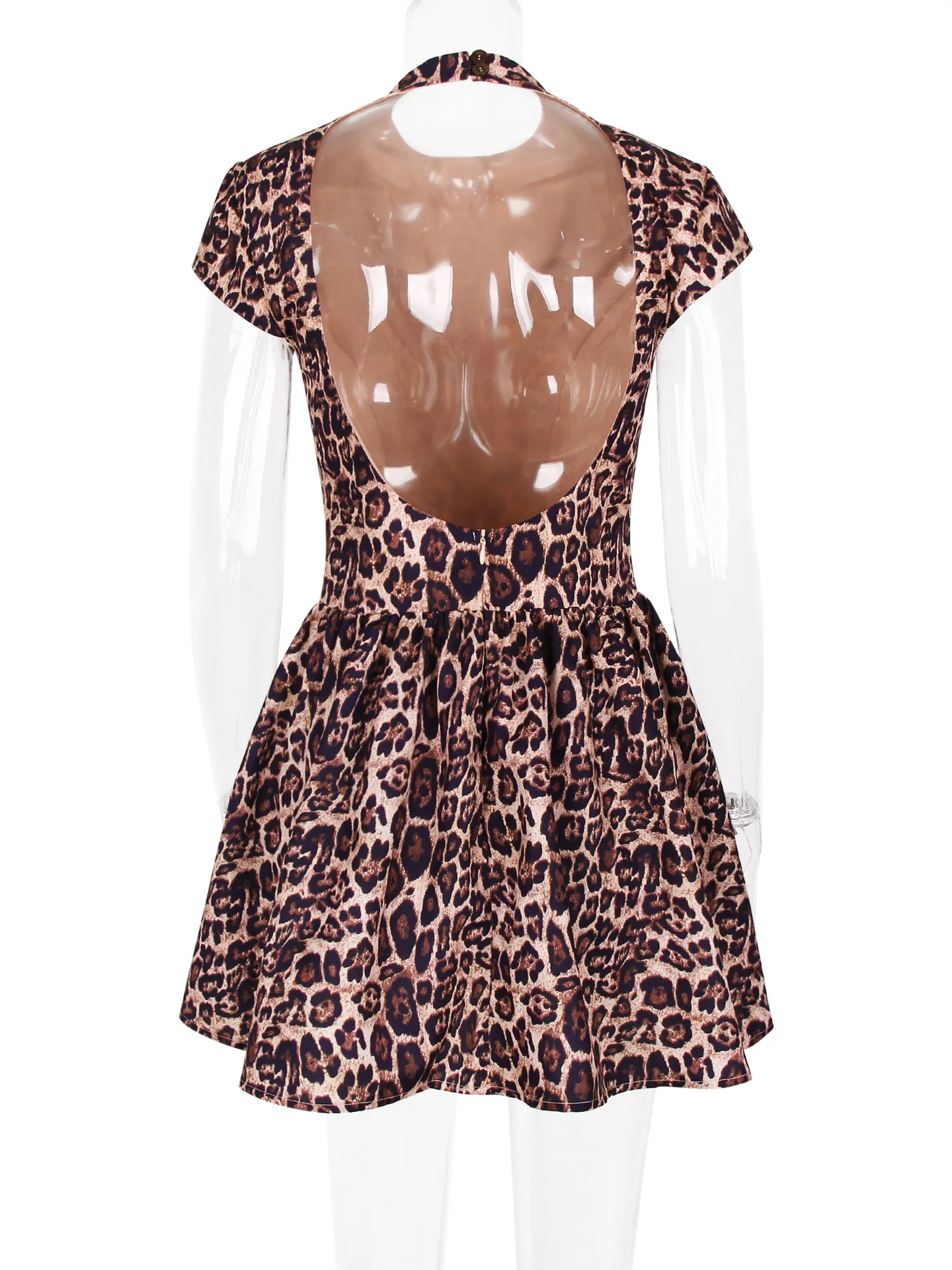High Quality Womens Fashion Clothes Ladies Short Dresses Vestido De Fiesta Sexy Leopard Print Backless Mini Party Dress