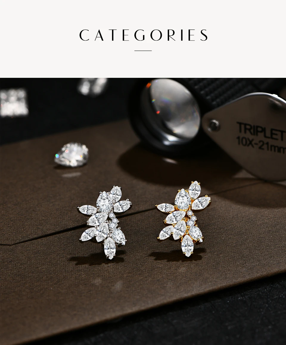 Earrings Studs Fine Jewellery Moissanite Earrings 925 Sterling Silver D Color VVS Moissnite Fancy Earrings Gift
