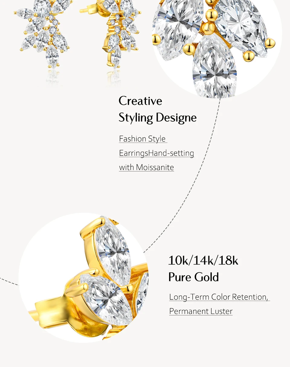 Earrings Studs Fine Jewelry Moissanite Earrings 925 Sterling Silver D Color VVS Moissnite Fancy Earrings Gift for Women