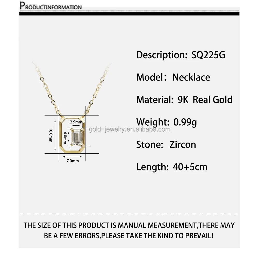 AU375 9k Real Yellow Gold Necklace Zircon Pendant Necklace Pure Gold Jewelry Wholesale Lower Price