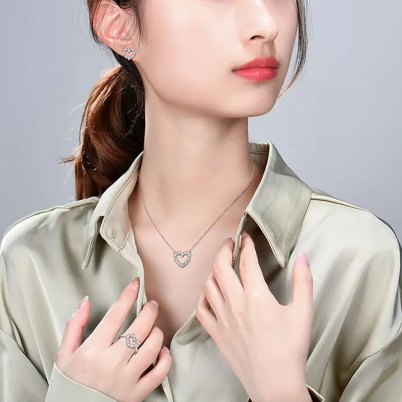 New Arrivals Exquisite Fine Jewelry Necklace Gold Vermeil 925 Sterling Silver Pave Cz Zircon Love Heart Minimalist Necklace