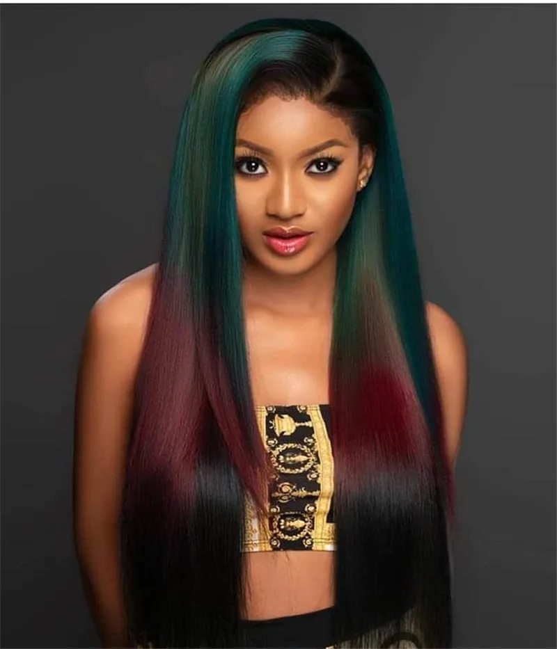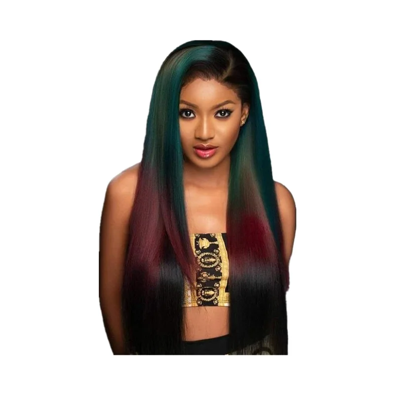 European and American Wig Women Long Straight Distribution Green and Red Gradient Color Mixed Hair Set Synthetic Wig