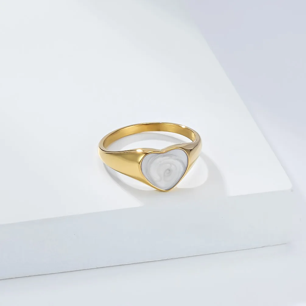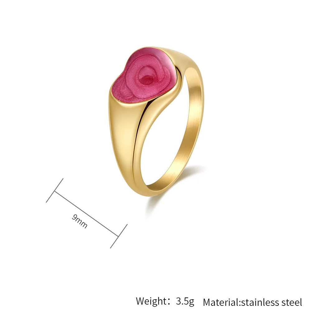 Fashion High Quality Heart Shape Gold Ring Stainless Steel Waterproof Anti Tarnish Wholesale Jewelry Ring for Women