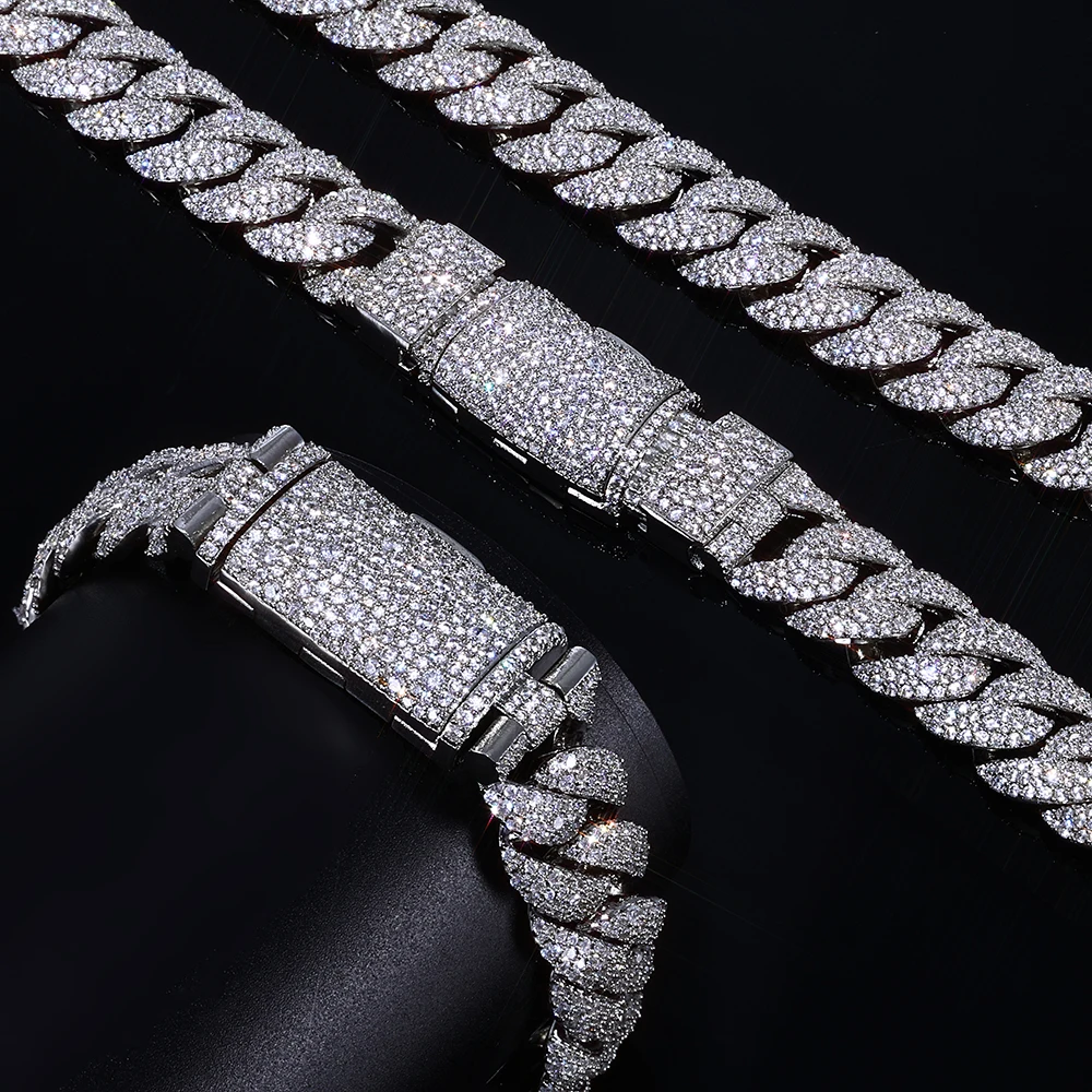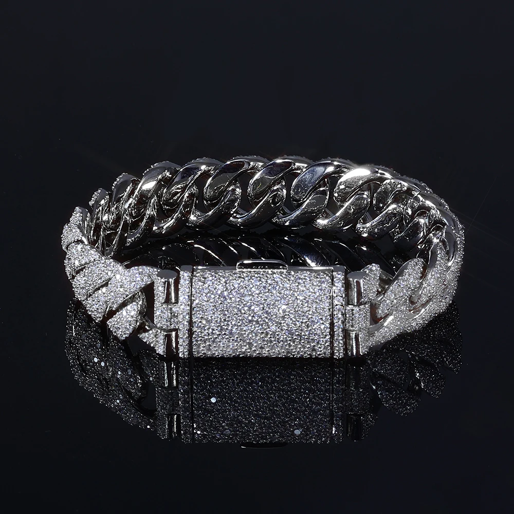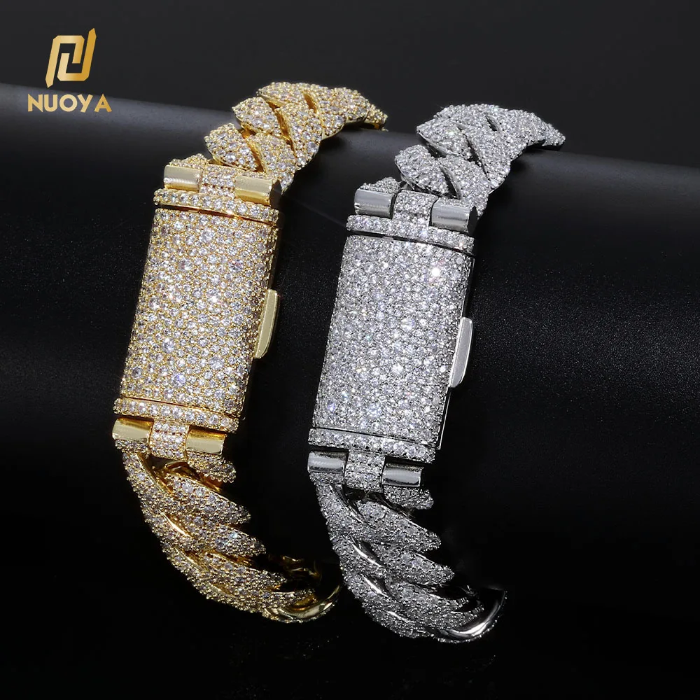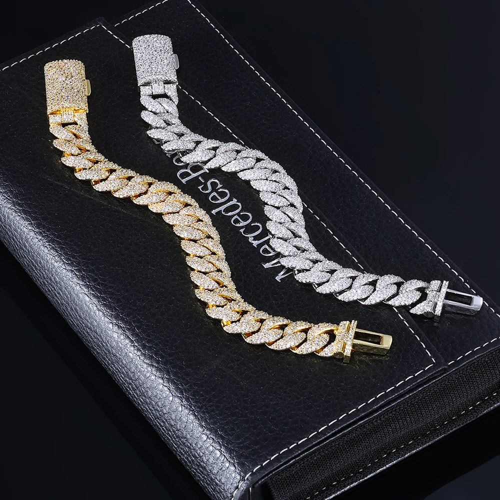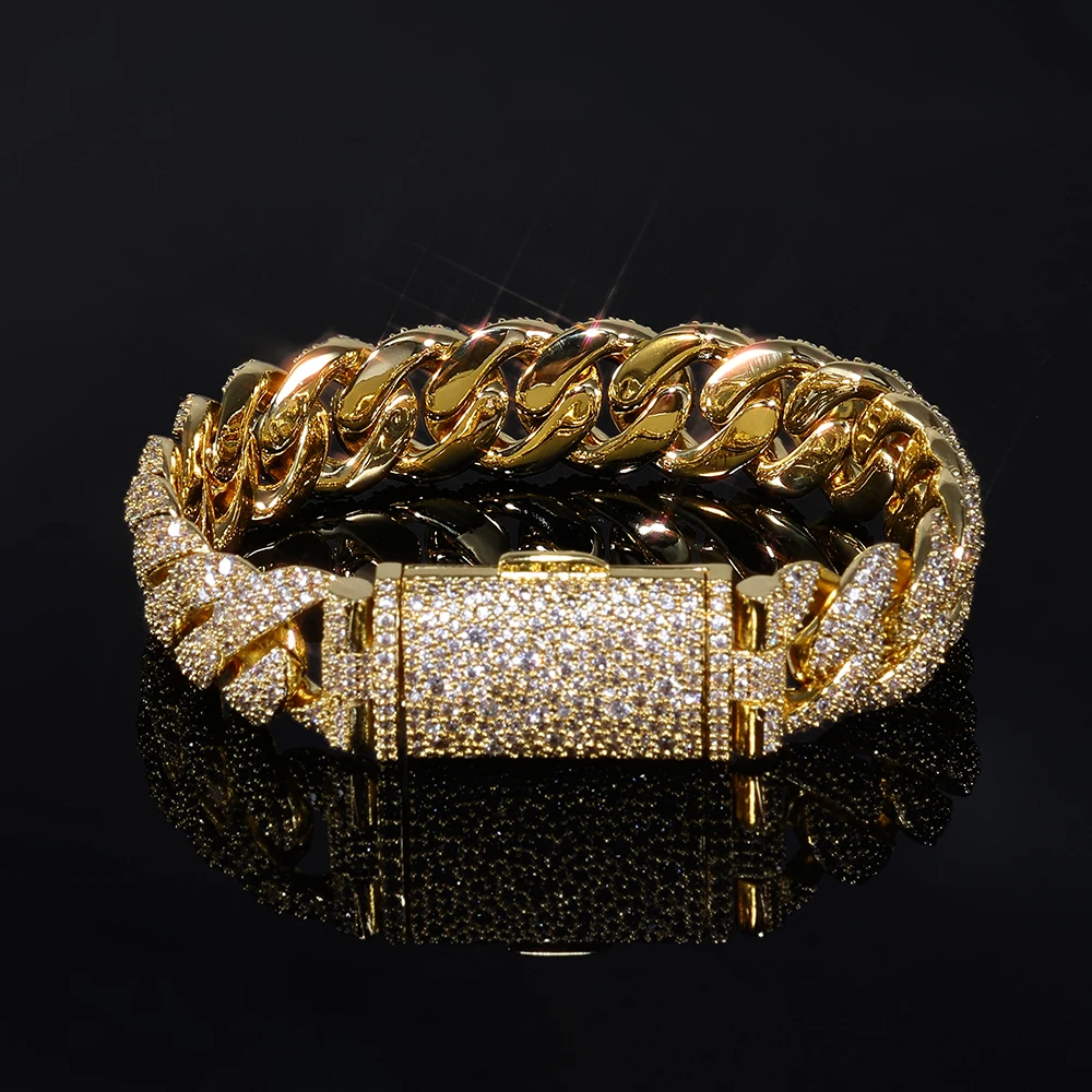 Iced Out Diamond Cuban Chain Bracelet 14mm Width Silver and Gold Plated Heavy Cuban Link Chain Hip Hop Jewelry for Women